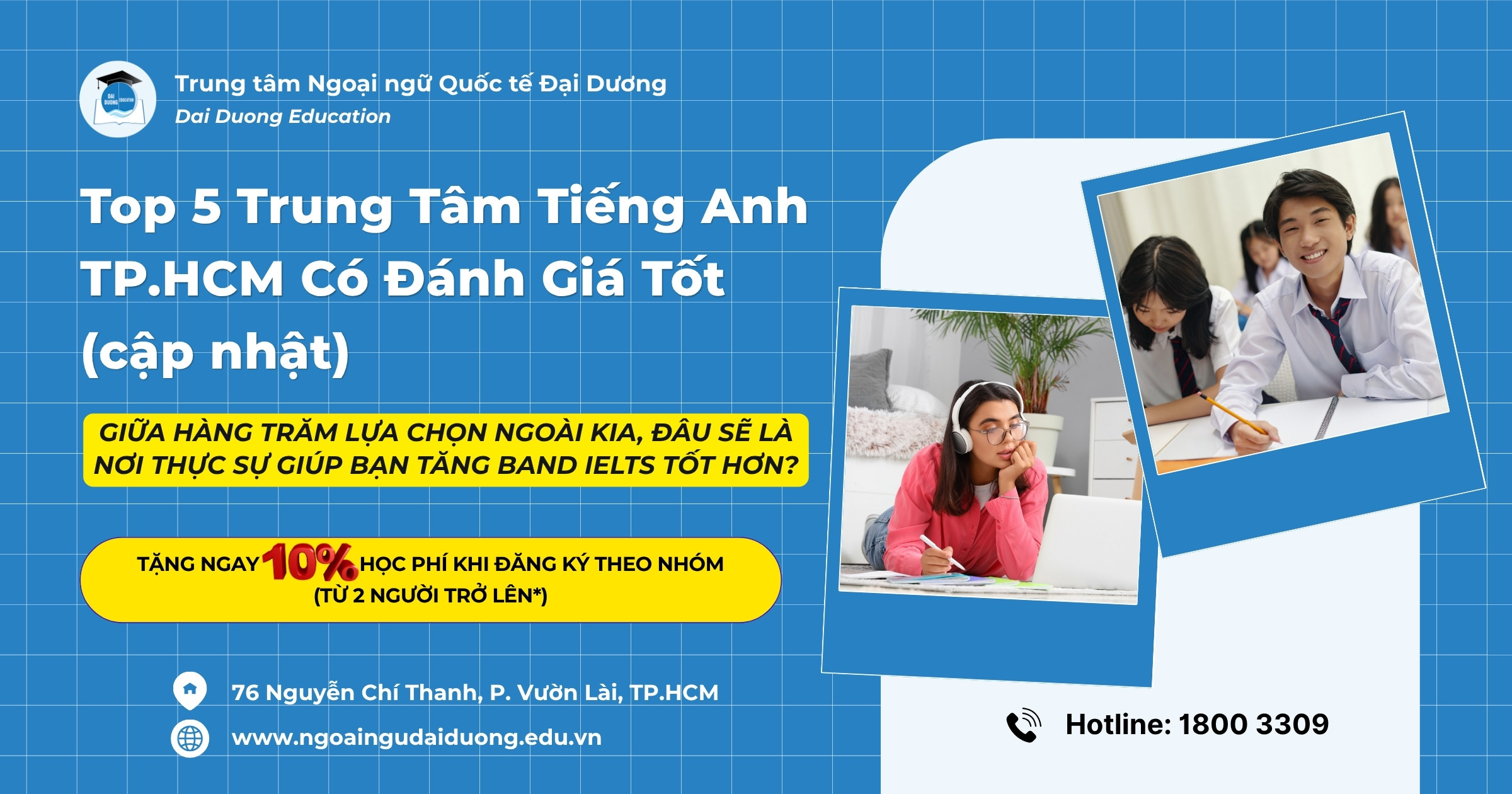 Sứ mệnh: Với phương châm: "DẠY HẾT MÌNH - HỌC HĂNG SAY", Trung tâm Anh ngữ Đại Dương luôn hướng đến một thế hệ học viên Anh ngữ thành thạo, tự tin, có khả năng sử dụng tiếng Anh trong học tập, công việc và cuộc sống